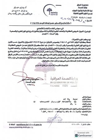 خاطبت وزارة الصحة، اليوم الخميس، مجلس الخدمة العامة الاتحادي لتعيين خريجي الكليات والمعاهد الطبية والتقنية المشمولين بقانون تدرج ذوي المهن الطبية والصحية.