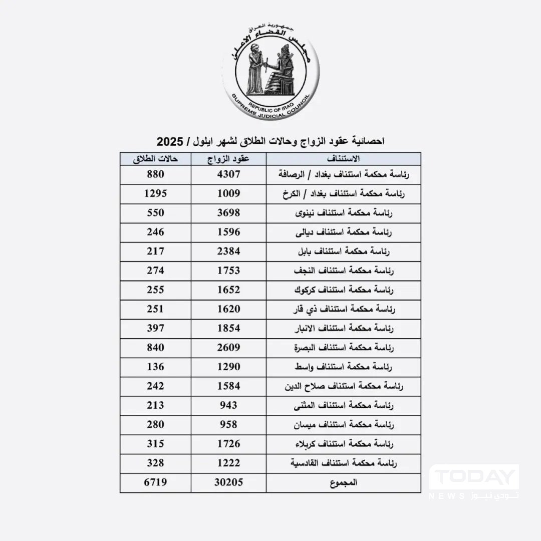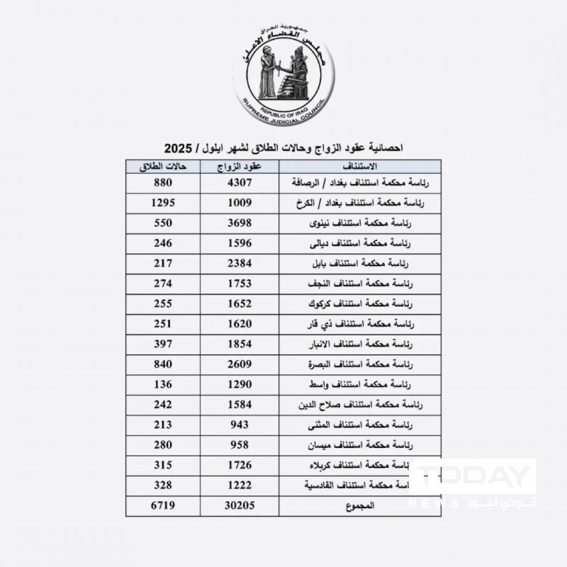 القضاء : تسجيل نحو 40 ألف حالة زواج وطلاق خلال شهر واحد