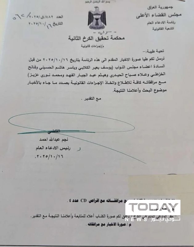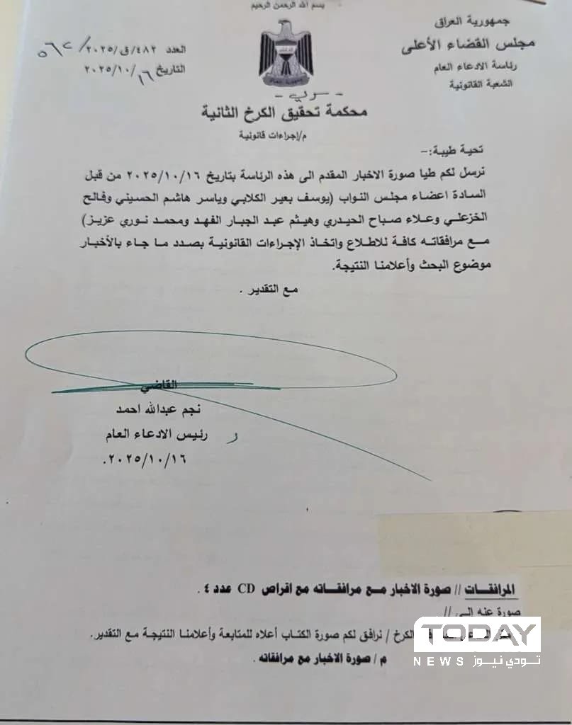 أحالت رئاسة الادعاء في العراق، شكوى لأعضاء في مجلس النواب ضد رئيس مجلس الوزراء محمد شياع السوداني إلى المحكمة المختصة بالتحقيق في قضايا النزاهة عن عدد من المخالفات القانونية.