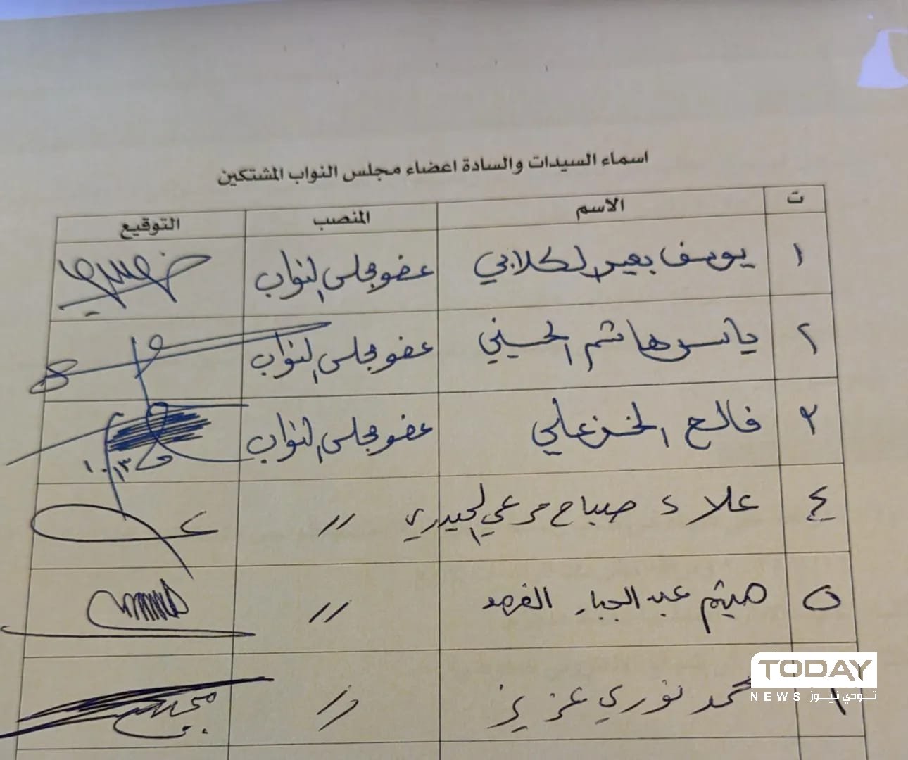 و مقدمو الشكوى ستة نواب وهم كل من: يوسف الكلابي، وياسر الحسيني، وفالح الخزعلي، وعلاء الحيدري، وهيثم الفهد، ومحمد نوري.