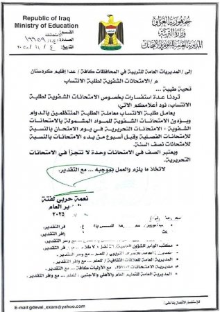 أوضحت ️وزارة التربية، اليوم الثلاثاء، آلية اداء الامتحانات الشفوية بالنسبة لطلبة الانتساب، مؤكدة شمولهم بالامتحانات للمواد المشمولة (الشفوية + التحريرية).